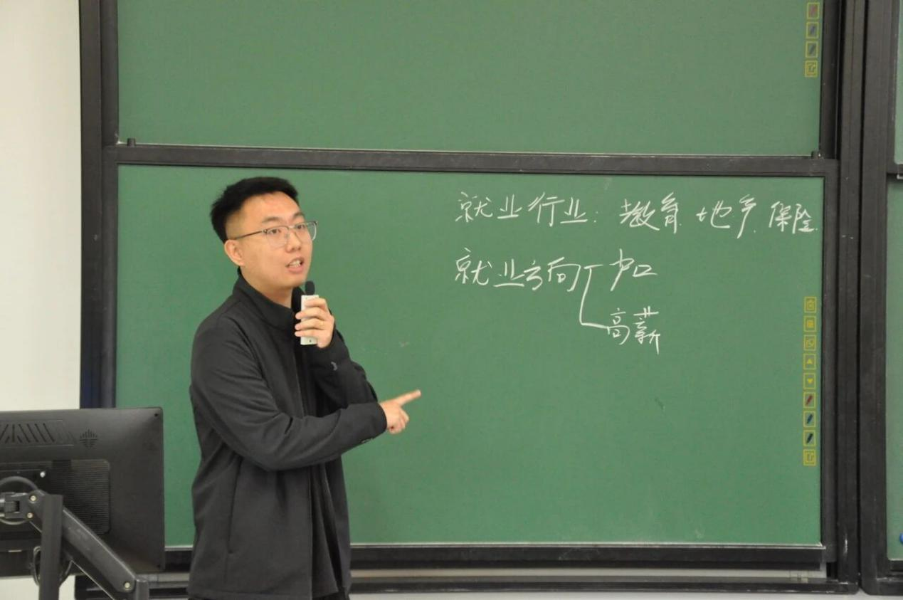 陈旷百学长在校期间曾在就业中心担任助理职务,他针对应届毕业生最为关心的两个问题,户口与薪资,为同学们在行业与企业选择方面提供了建议。同时,陈旷百学长还结合自身求职经历和工作经验,向同学们讲解了面试时应关注的重点事项,以及校招简历与社招简历的不同之处。