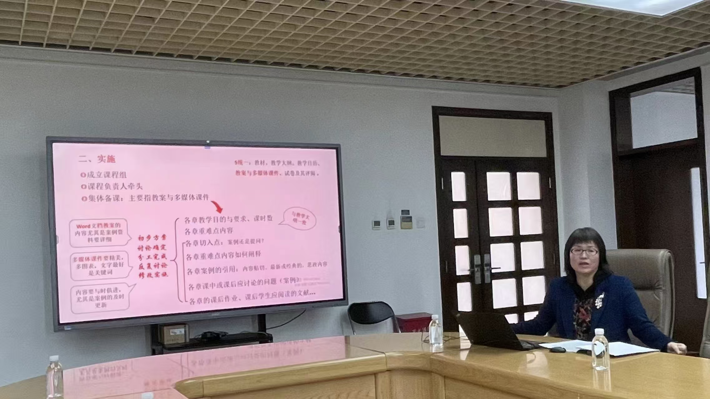 欧阳爱平教授围绕本科课程教学展开专题分享,创新性提出本科课程 “5统一” 教学模式——即实行教材、教学大纲、教学日历、教案与多媒体课件、试卷及其评阅5个方面的统一。她结合自身数十年教学经验,从“5统一” 模式的提出背景切入,详细讲解了该模式在课程组集体备课中的具体实施流程:从前期教材选用与大纲制定的协同研讨,到中期教学日历与课件的同步优化,再到后期试卷命题与评阅标准的统一规范,每一步均辅以实际案例,让参会教师直观理解“5统一”对提升课程标准化与教学质量的重要意义。同时,她还分享了该模式在学院部分课程中的实践效果,通过对比实施前后的学生反馈与教学评估数据,印证了“5统一”模式在减少教学差异、保障教学质量方面的显著作用,并针对不同专业课程的适配性提出了个性化建议。